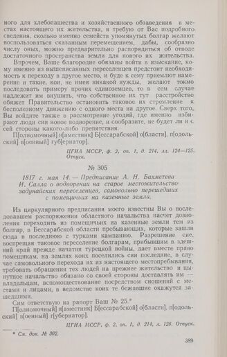 Главная История Молдавии: Док. и материалы. Т. II. Устройство задунайских п... Документы 1817 г. мая 14. — Предписание А. Н. Бахметева И. Салла о водворении...