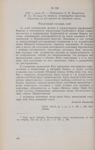 1817 г. июня 23. — Отношение А. Н. Бахметева И. Гр. Бальшу по вопро...