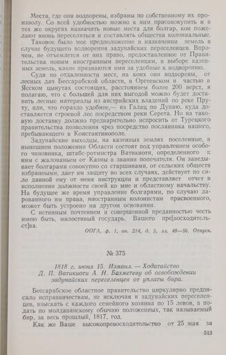 1818 г. июня 15. Измаил. — Ходатайство Д. П. Ватикиоти А. Н. Бахметеву об освобождении задунайских переселенцев от уплаты бира