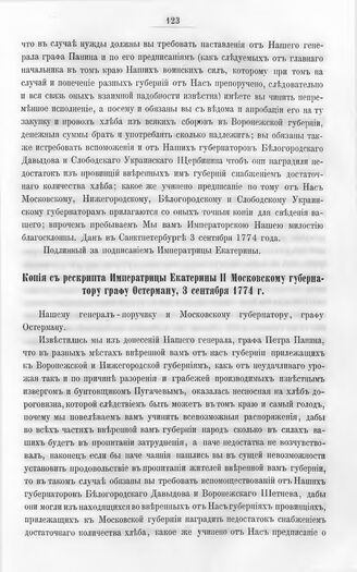 Бумаги графа Петра Ивановича Панина о пугачевском бунте. Копия с рескрипта Императрицы Екатерины II Московскому губернатору графу Остерману, 3 сентября 1774 г.