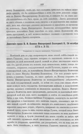 Бумаги графа Петра Ивановича Панина о пугачевском бунте. Донесение графа П.И. Панина Императрице Екатерине II, 26 октября 1774 г. № 23