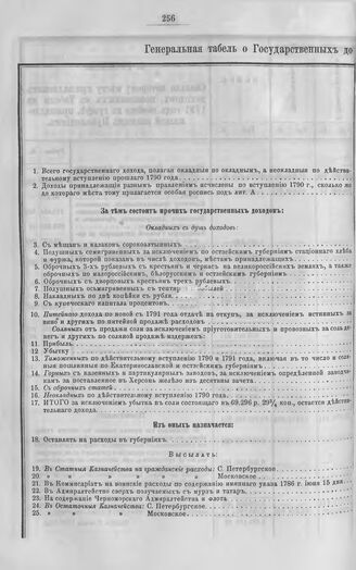 Государственные доходы и расходы в царствование императрицы Екатерины II. Генеральная табель о Государственных доходах, расходах и остатке на 1792 год