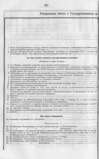 Государственные доходы и расходы в царствование императрицы Екатерины II. Генеральная табель о Государственных доходах, расходах и остатке на 1793 год