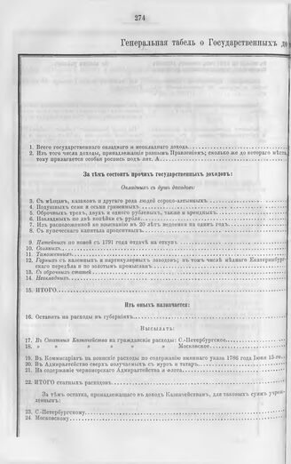Государственные доходы и расходы в царствование императрицы Екатерины II. Генеральная табель о Государственных доходах, расходах и остатке на 1794 год