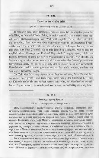 Дипломатические документы, относящиеся к истории России в XVIII столетии. Том III. Январь-июнь 1742 года. № 679. Пецольд графу Брюлю. (№ 36). С.-Петербург, 25 января 1742 г.