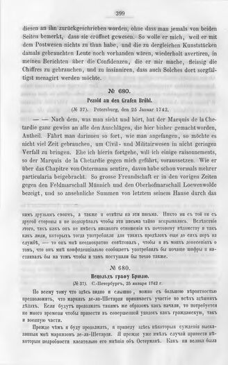 Дипломатические документы, относящиеся к истории России в XVIII столетии. Том III. Январь-июнь 1742 года. № 680. Пецольд графу Брюлю. (№ 37). С.-Петербург, 25 января 1742 г. // Саксонский государственный архив в Дрездене.
