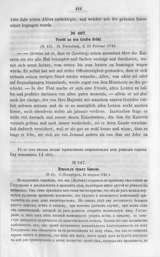 Дипломатические документы, относящиеся к истории России в XVIII столетии. Том III. Январь-июнь 1742 года. № 687. Пецольд графу Брюлю. (№ 45). С.-Петербург, 25 февраля 1742 г.
