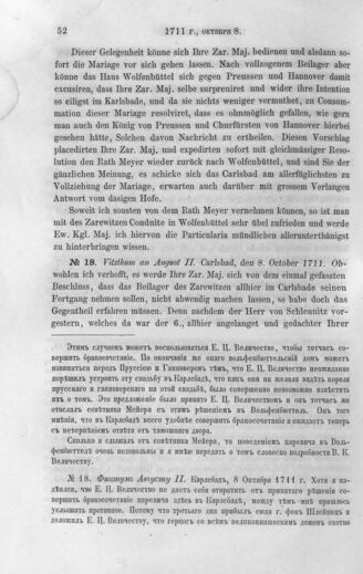 Дела с Москвою, относительно польско-шведской войны; переговоры, веденные через главного сокольничего графа Фицтума о действиях в Померании и при царском дворе. Фицтум Августу II. Карлсбад, 8 октября 1711 г.