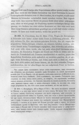 Дипломатические документы, относящиеся к истории России в XVIII столетии. С.-Петербург, 20-го Марта 1734 г.