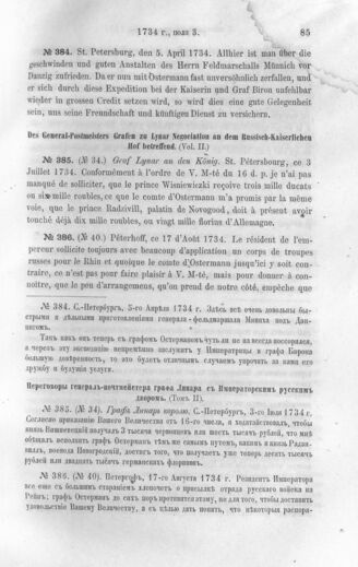 Дипломатические документы, относящиеся к истории России в XVIII столетии. Граф Линар королю. С.-Петербург, 3-го июля 1734 г.