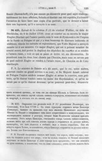 Дипломатические документы, относящиеся к истории России в XVIII столетии. Отрывок из реляции под № 11 резидента Вальтера, из Стокгольма, 8-го Июля 1738 г.