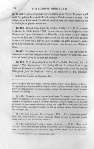 Дипломатические документы, относящиеся к истории России в XVIII столетии. Отрывок из письма резидента Вальтера его сиятельству графу де-Брюлю, 15-го Августа 1738 г.