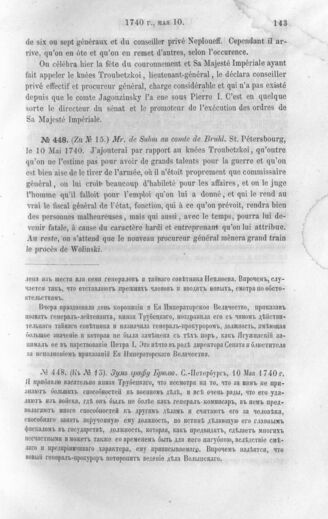 Дипломатические документы, относящиеся к истории России в XVIII столетии. Зум графу Брюлю. С.-Петербург, 10 Мая 1740 г.
