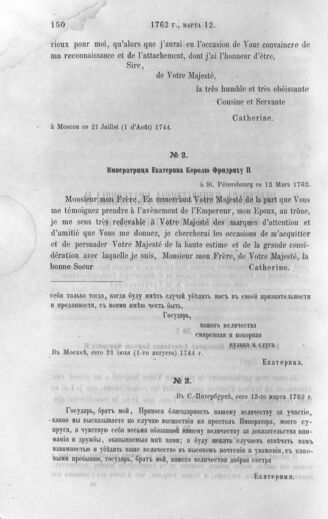 Императрица Екатерина Королю Фридриху II. С.-Петербург, 12 марта 1762 г.