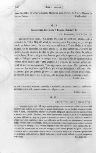 Императрица Екатерина II Королю Фридриху II. С.-Петербург, 6 апреля 1764 г.