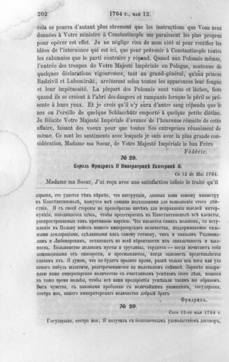Король Фридрих II Императрице Екатерине II. 12 мая 1764 г.