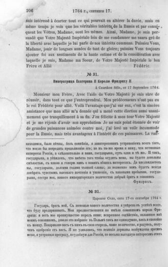 Императрица Екатерина II Королю Фридриху II. Царское Село, 17 сентября 1764 г.