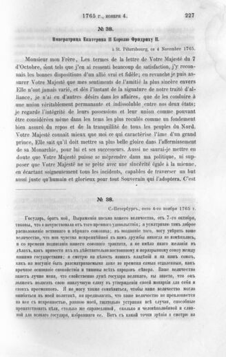 Императрица Екатерина II Королю Фридриху II. С.-Петербург, 4 ноября 1765 г.