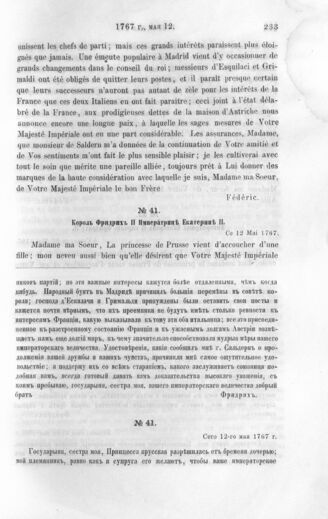 Король Фридрих II Императрице Екатерине II. 12 мая 1767 г.
