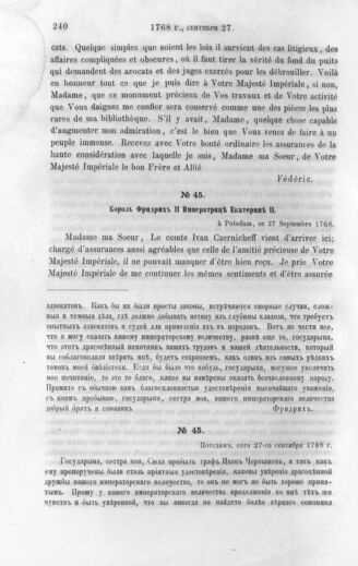 Король Фридрих II Императрице Екатерине II. Потсдам, 27 сентября 1768 г.