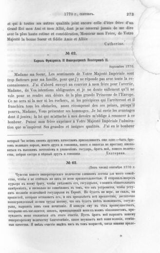 История России -- Переписка императрицы Екатерины II с королем Фридрихом II