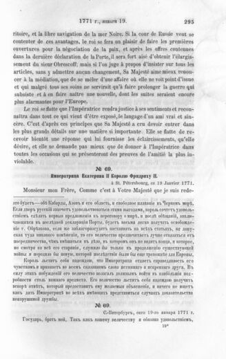 Императрица Екатерина II Королю Фридриху II. С.-Петербург, 19 января 1771 г.