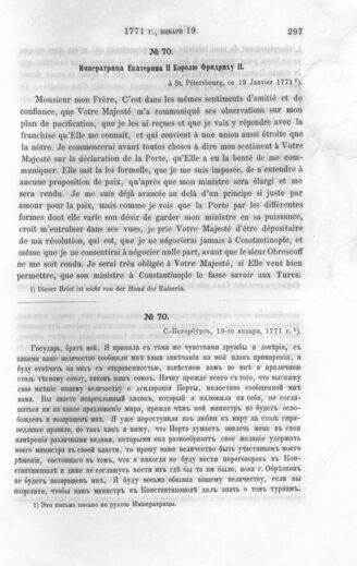 Императрица Екатерина II Королю Фридриху II. С.-Петербург, 19 января 1771 г.