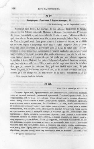 Императрица Екатерина II Королю Фридриху II. 30 сентября 1773 г.