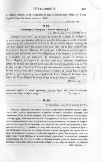 Императрица Екатерина II Королю Фридриху II. C.-Петербург, 13 октября 1773 г.