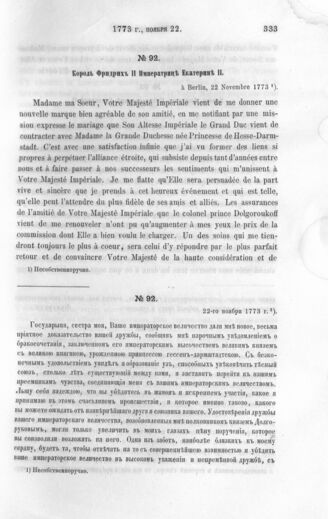 Король Фридрих II Императрице Екатерине II. 22 ноября 1773 г.