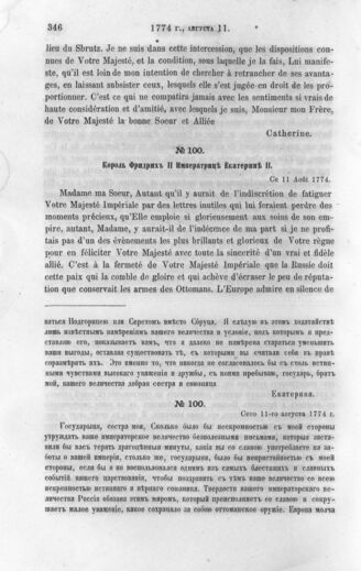 Король Фридрих II Императрице Екатерине II. 11 августа 1774 г.