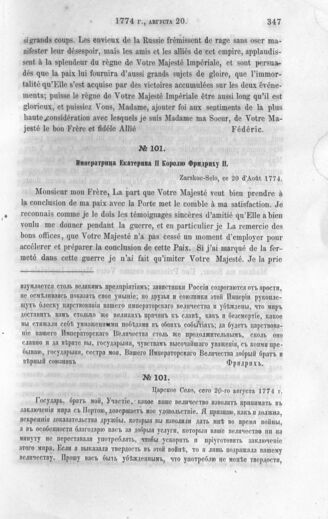 Императрица Екатерина II Королю Фридриху II. Царское Село, 20 августа 1774 г.
