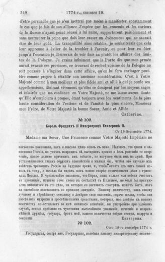 Король Фридрих II Императрице Екатерине II. 18 сентября 1774 г.