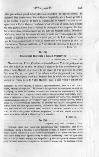 Императрица Екатерина II Королю Фридриху II. Царское Село, 11 июня 1776 г. [1]