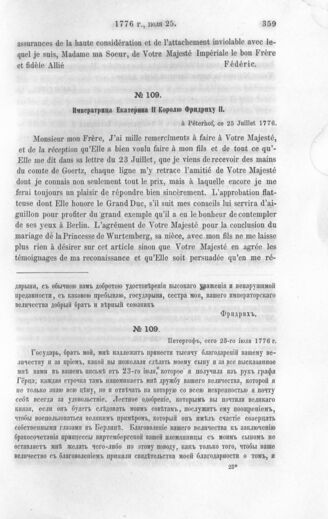 Императрица Екатерина II Королю Фридриху II. Петергоф, 25 июля 1776 г.