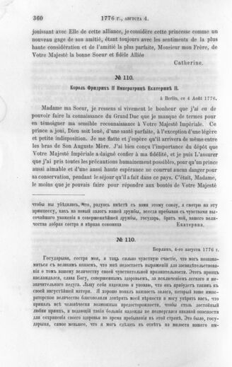Король Фридрих II Императрице Екатерине II. Берлин, 4 августа 1776 г. [1]