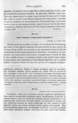 Король Фридрих II Императрице Екатерине II. Берлин, 4 августа 1776 г. [2]