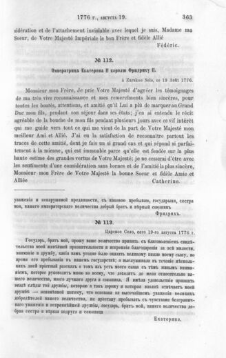 Императрица Екатерина II королю Фридриху II. Царское Село, 19 августа 1776 г.
