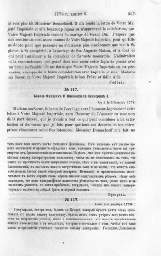 Король Фридрих II Императрице Екатерине II. 2 декабря 1776 г.