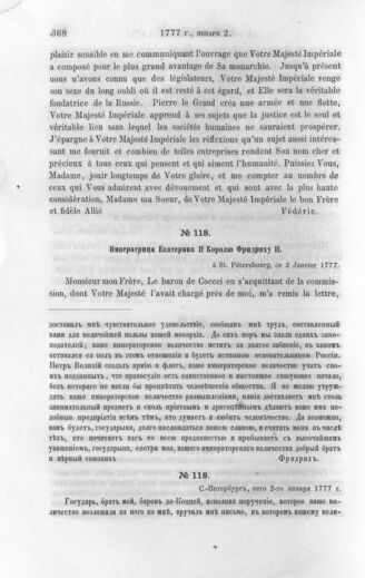 Императрица Екатерина II Королю Фридриху II. С.-Петербург, 2 января 1777 г.