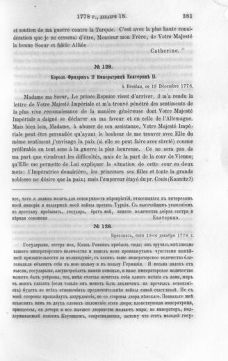 Король Фридрих II Императрице Екатерине II. Бреславль, 18 декабря 1778 г.