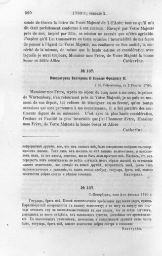 Императрица Екатерина II Королю Фридриху II. С.-Петербург, 2 февраля 1780 г.