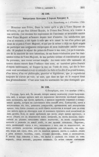 Императрица Екатерина II Королю Фридриху II. С.-Петербург, 1 октября 1780 г.