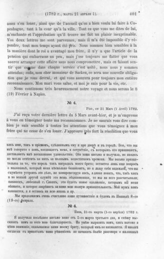 Собственноручные письма Великой Княгини Марии Федоровны в последствии императрицы к Барону Карлу Ивановичу Сакену, посланнику при Датском Дворе. Пиза, 21-го марта (1-го апреля) 1782 г.