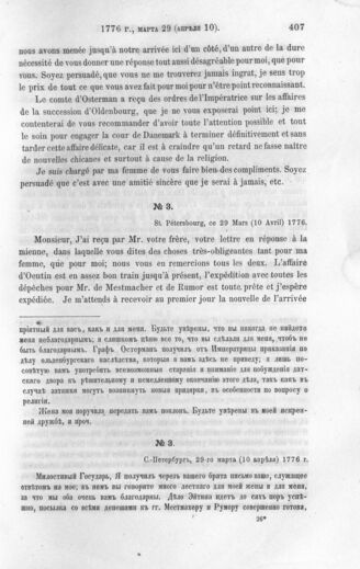 Письма Великого Князя Павла Петровича в последствии Императора Павла I к Барону Карлу Ивановичу Сакену, Посланнику при Датском дворе. С.-Петербург, 29 го марта (10 апреля) 1776 г.