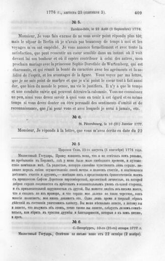 Письма Великого Князя Павла Петровича в последствии Императора Павла I к Барону Карлу Ивановичу Сакену, Посланнику при Датском дворе. С.-Петербург, 10-го (21-го) января 1777 г.