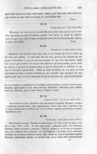 Письма Великого Князя Павла Петровича в последствии Императора Павла I к Барону Карлу Ивановичу Сакену, Посланнику при Датском дворе. Петергоф, 13-го (24-го) июля 1780 г.