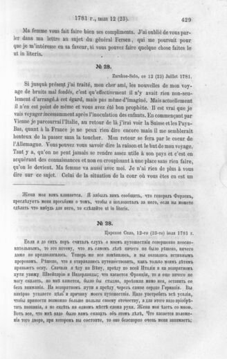 Письма Великого Князя Павла Петровича в последствии Императора Павла I к Барону Карлу Ивановичу Сакену, Посланнику при Датском дворе. Царское Село, 12-го (23-го) июля 1781 г.
