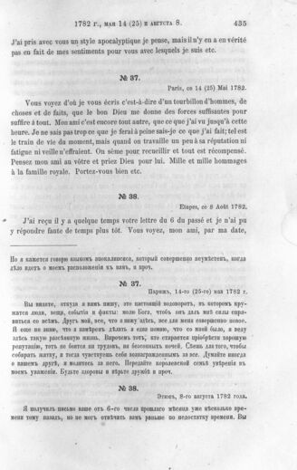Письма Великого Князя Павла Петровича в последствии Императора Павла I к Барону Карлу Ивановичу Сакену, Посланнику при Датском дворе. Париж, 14-го (25-го) мая 1782 г.