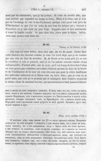 Письма Великого Князя Павла Петровича в последствии Императора Павла I к Барону Карлу Ивановичу Сакену, Посланнику при Датском дворе. Вена, 12-го октября 1782 г.